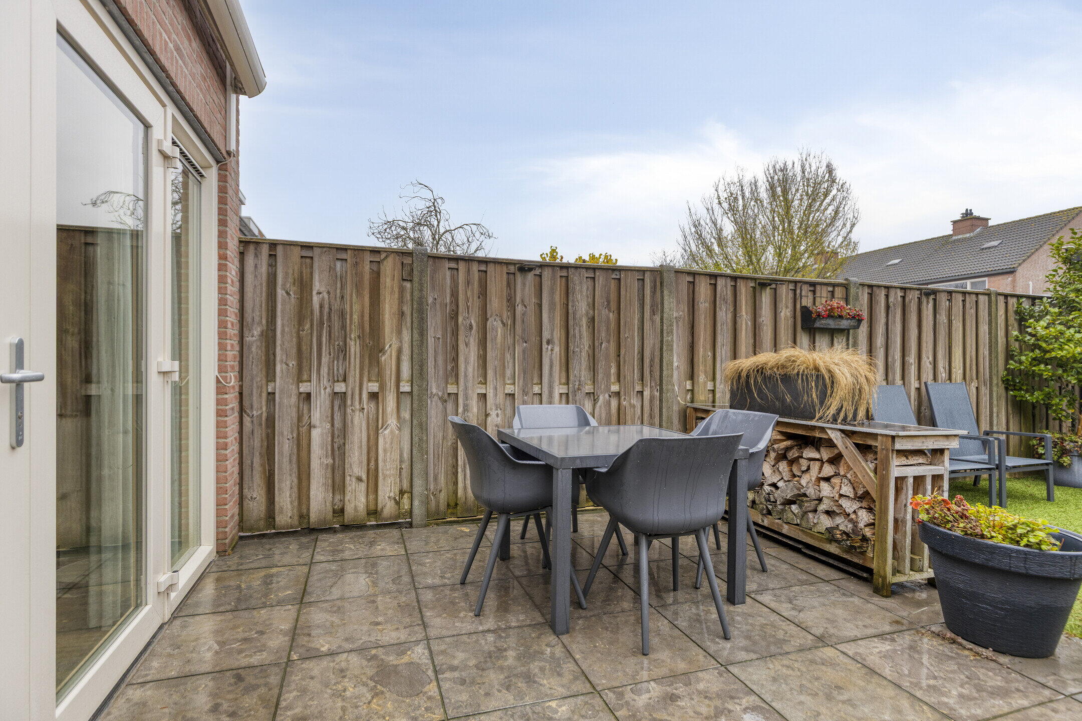 De achtertuin is netjes aangelegd met een combinatie van groen en bestrating. Helemaal achterin vind je een grote overkapping – dé plek om te loungen bij een vuurtje of gezellig samen te zijn met vrienden. Daarnaast is er ook nog een praktische berging aanwezig en de achtertuin heeft bijna de gehele dag zon en beschikt over een achterom. Een heerlijke tuin met veel privacy én sfeer!